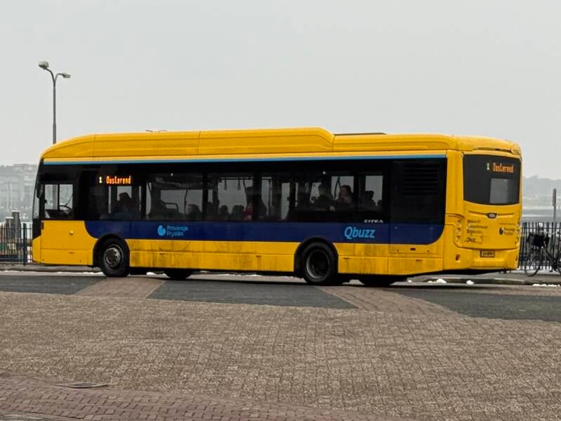 Qbuzz 1152 - BYD K9A - is onderweg van de veerdam om passagiers naar het dorp te brengen