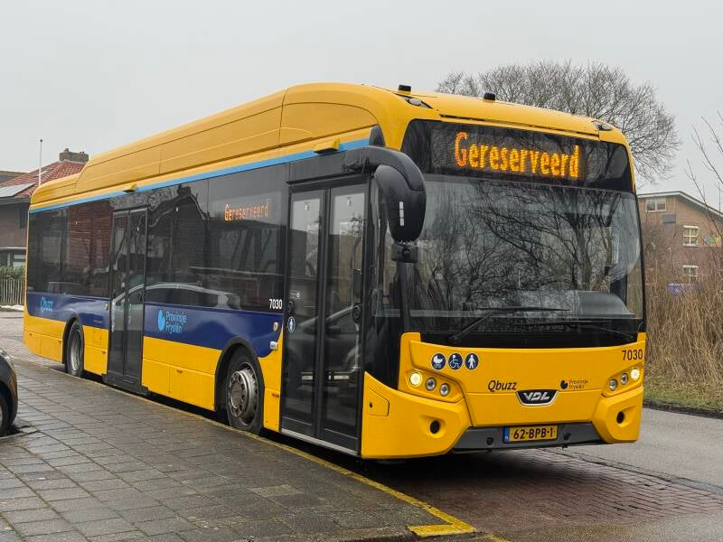 De Qbuzz 7030 is op pad met een delegatie van de Tweede Kamer.