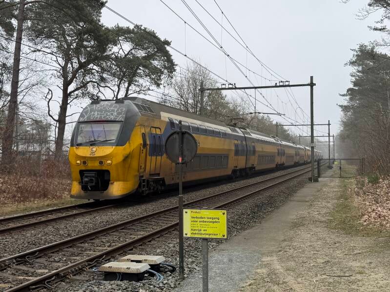 De NS dubbeldekkers 8633 en 9595 zijn onderweg als IC 536 van Groningen naar Den Haag Centraal