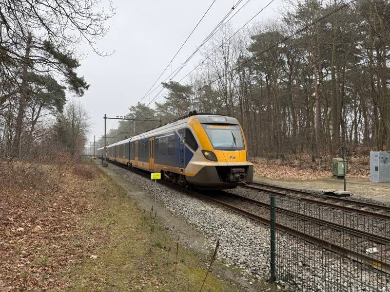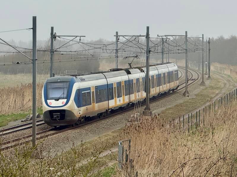 De NS SNG 3036 en 2355 zijn onderweg als Sprinter 5638 van Zwolle naar Utrecht Centraal