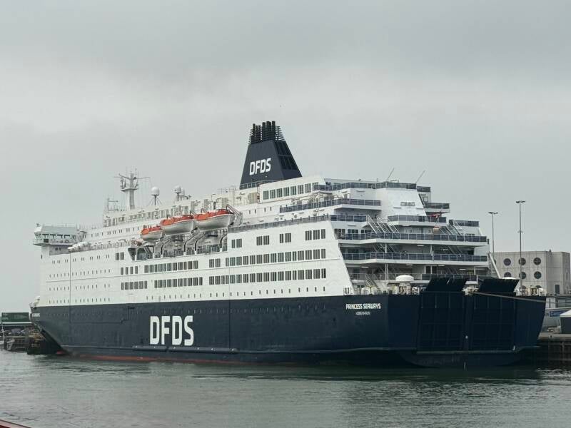 De DFDS ferry PRINCESS SEAWAYS ligt aan de kade, en is bezig met laden voor een nieuwe overtocht naar Newcastle