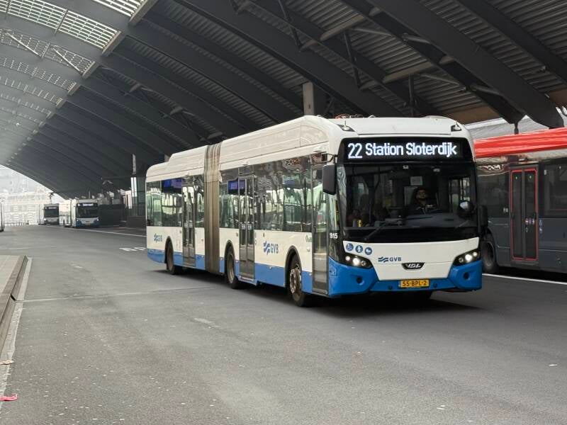 De GVB VDL Citea SLFA-180 Electric 1915 is onderweg van Muiderpoortstation naar Station Sloterdijk met lijn 22