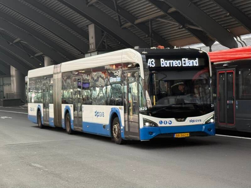 De GVB VDL Citea LF-181 2429 is onderweg als lijn 43 van Centraal naar Borneo Eiland