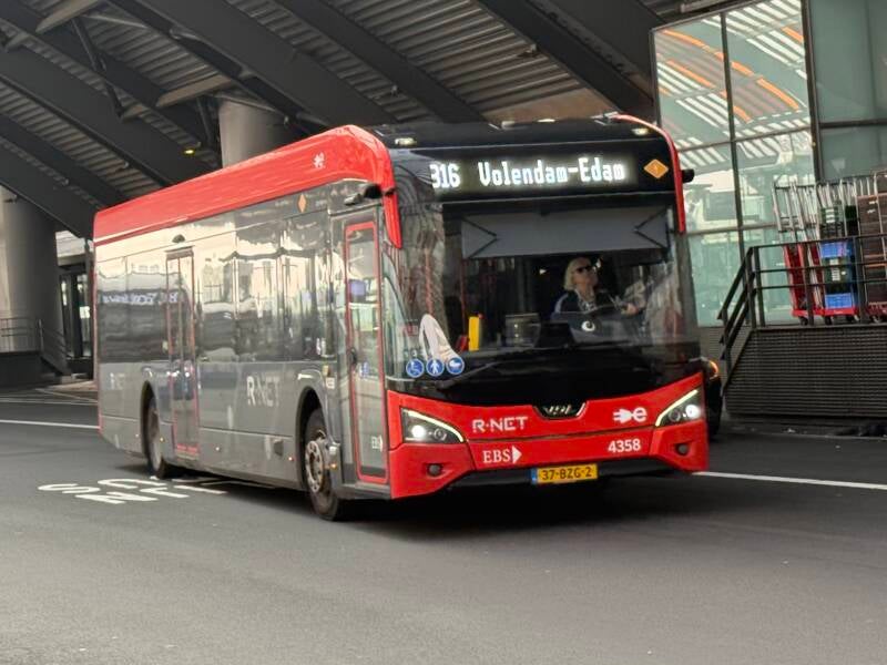 De EBS 4358 is onderweg naar de halte om vanaf daar te gaan rijden als 316 van Centraal naar Edam