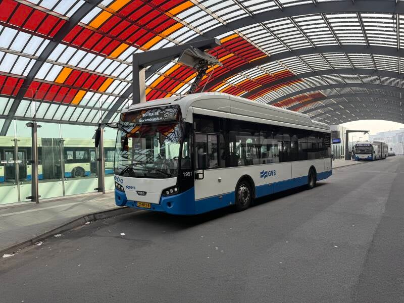 De GVB VDL Citea SLF-120 Electric 1915 staat onder de laadpaal op Centraal